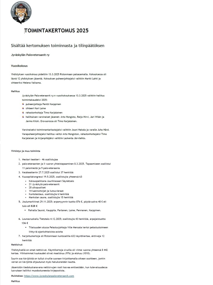 Hallituksen esitys vuoden 2025 toimintakertomukseksi: